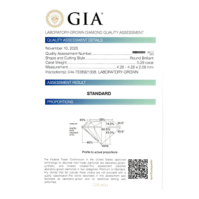 ココディア・ダイヤモンドは天然ダイヤモンドと同様の厳格なグレーディングプロセスを受け、”laboratory grown”として鑑定されます。