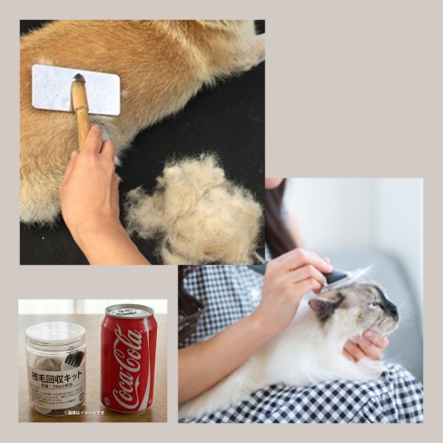 ペットの被毛はブラッシング時、シャンプートリートメント前の被毛収集を推奨いたします。